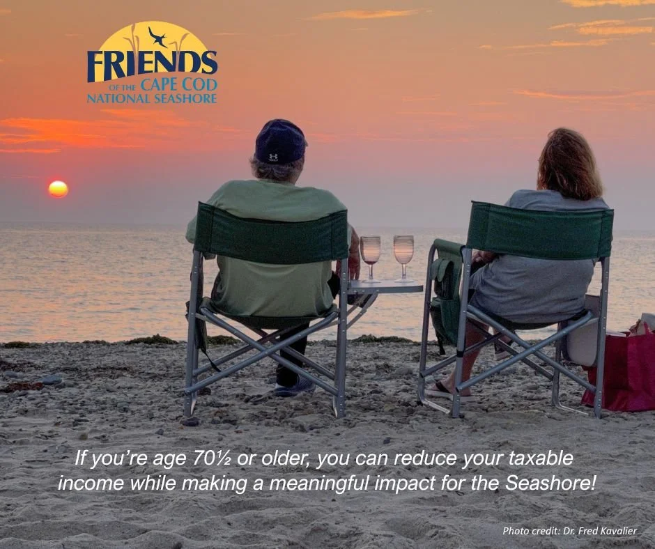 Did you know there’s a simple way to reduce your taxable income while making a meaningful impact on the Friends of Cape Cod National Seashore? If you’re age 70½ or older, you can make a Qualified Charitable Distribution (QCD)—a direct gift from your IRA—of up to $108,000 per year to support the Friends and the vital work we fund across the Seashore.